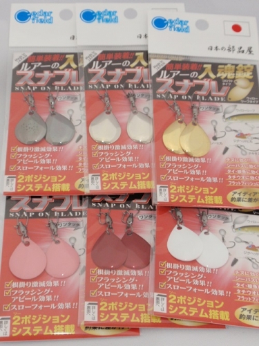 色んなルアーにスナップオン ワンタッチで装着できるブレードの登場です。 2wayポジションシステム搭載 あなたの発想で組み合わせ自由自在!!